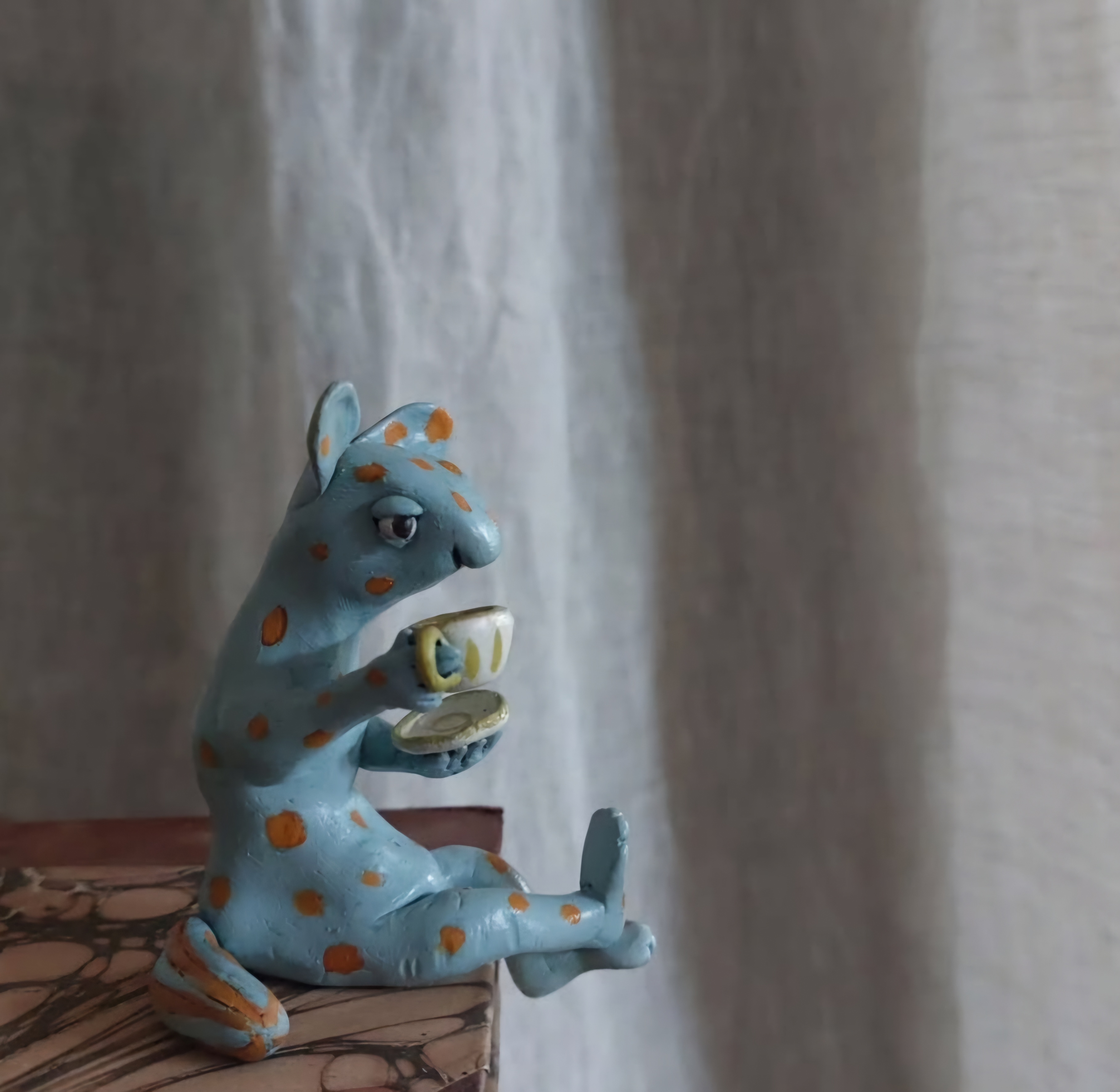 Jag bor numera i Avesta i södra Dalarna, där jag också har min ateljé. I den arbetar jag med skrivande, skapar figurer i lera och keramik och målar i olja.